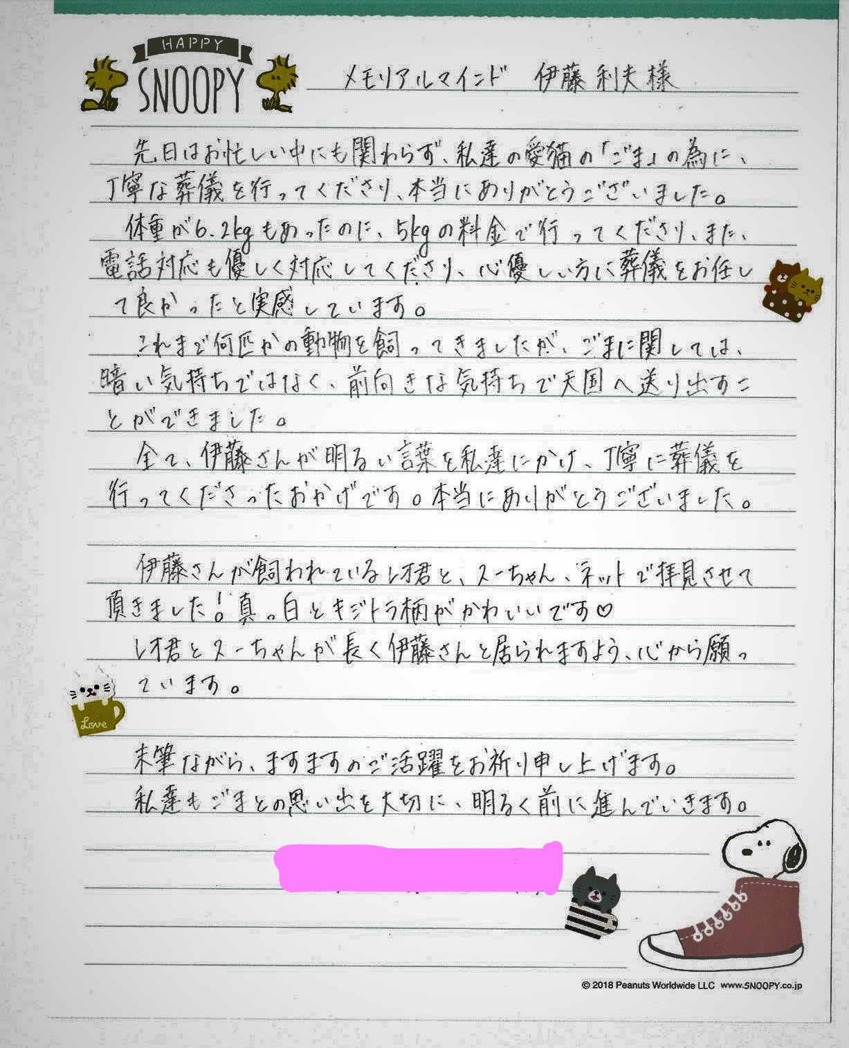 玉川村「ごまちゃん」の飼い主S様より、お手紙をいただき、とっても嬉しく拝見いたしました。これからの当社の励みにさせて頂きます。ご丁寧なお手紙、本当に感謝申し上げます。