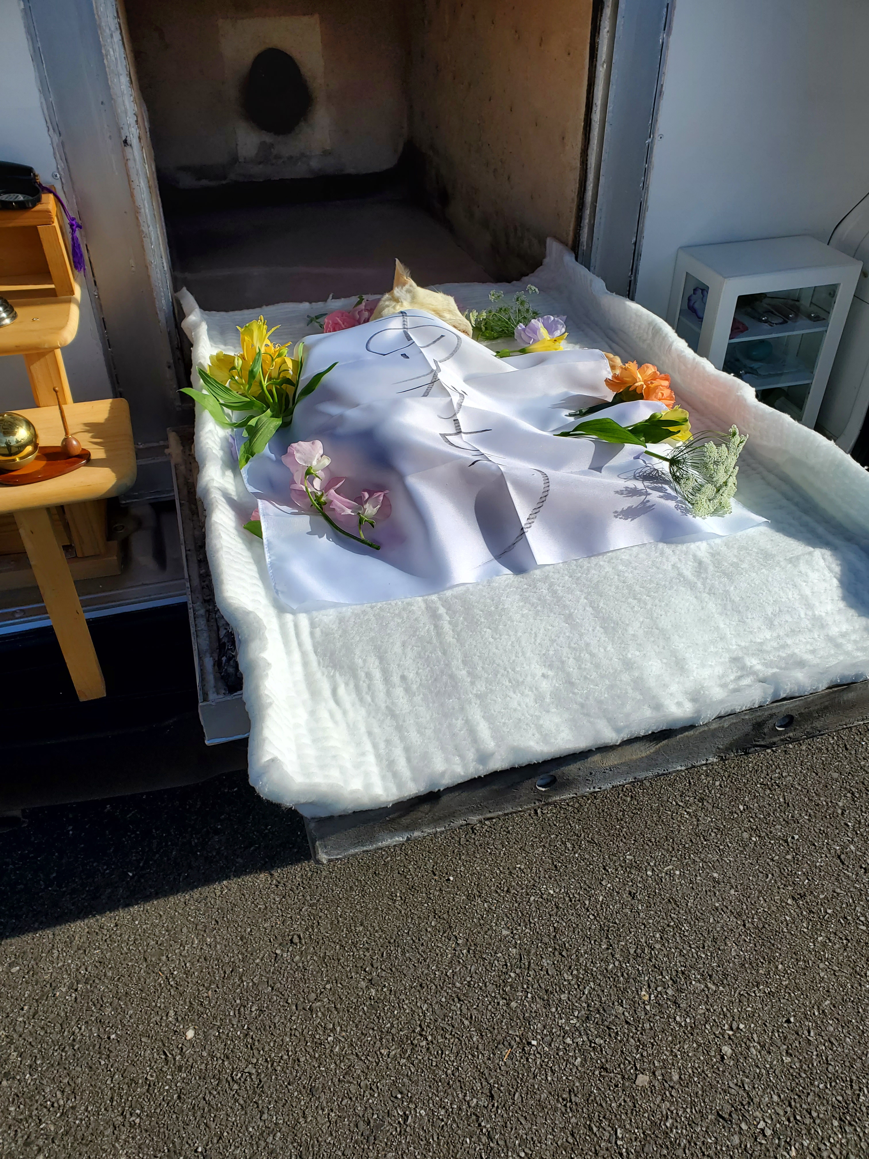 とても賢く、我が家には本当に特別で、大切な、大切な家族の一員でした。最期に真っ白で清潔なマットの上に、きれいなお花を飾って頂き“ありがとう”と書かれた白い布をかけて頂きお別れを致しました。