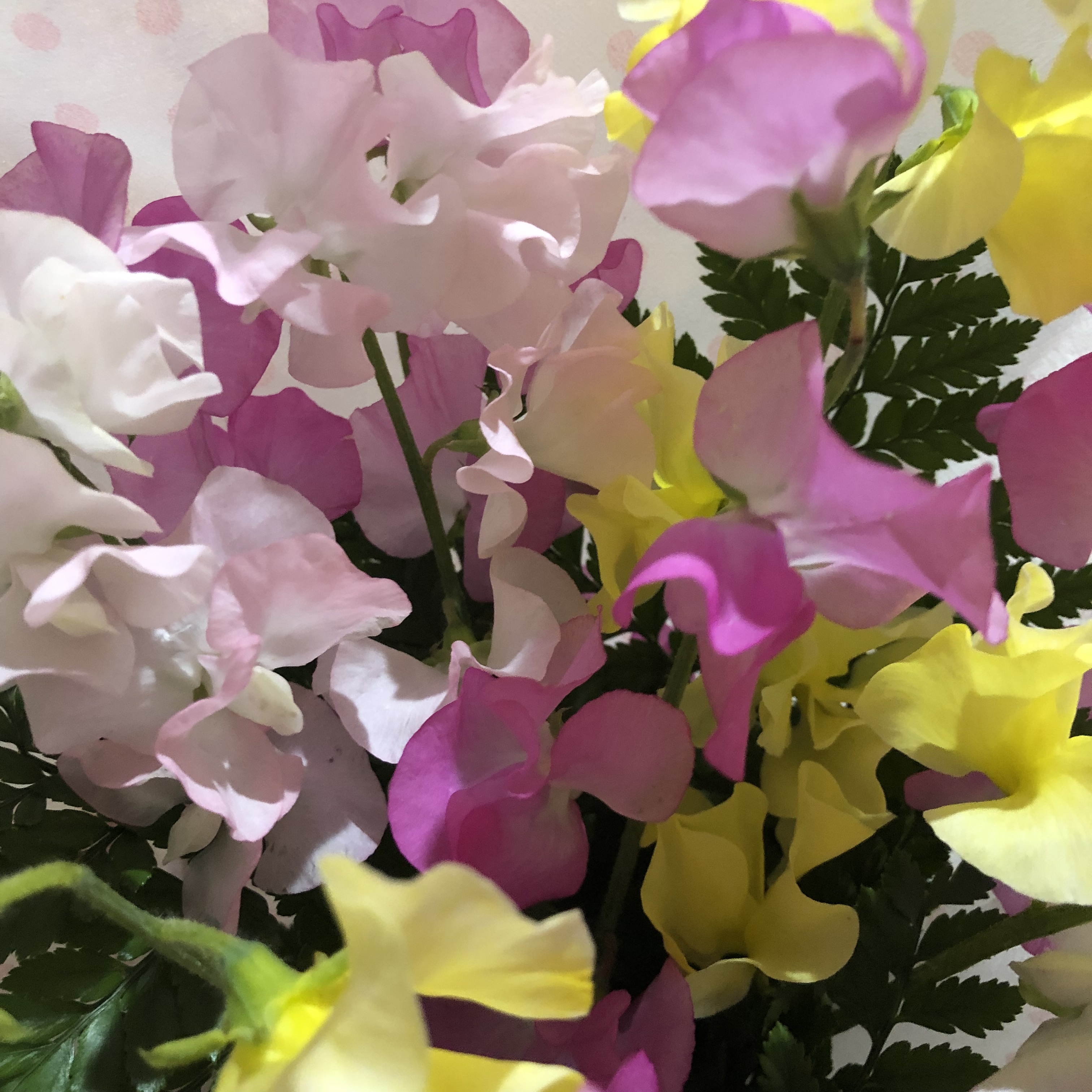 「ミュウちゃん」のからだ周りにスイートピーを一輪、一輪、丁寧に供えていただき、「ミュウちゃん」もきっと喜んでいる事と思います。