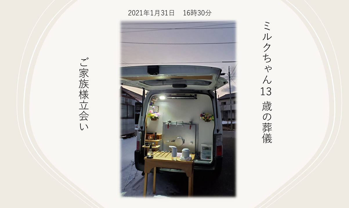 2021年1月31日 16時30分からご家族様4名に立ち会って頂き葬儀を執り行わせて頂きました。