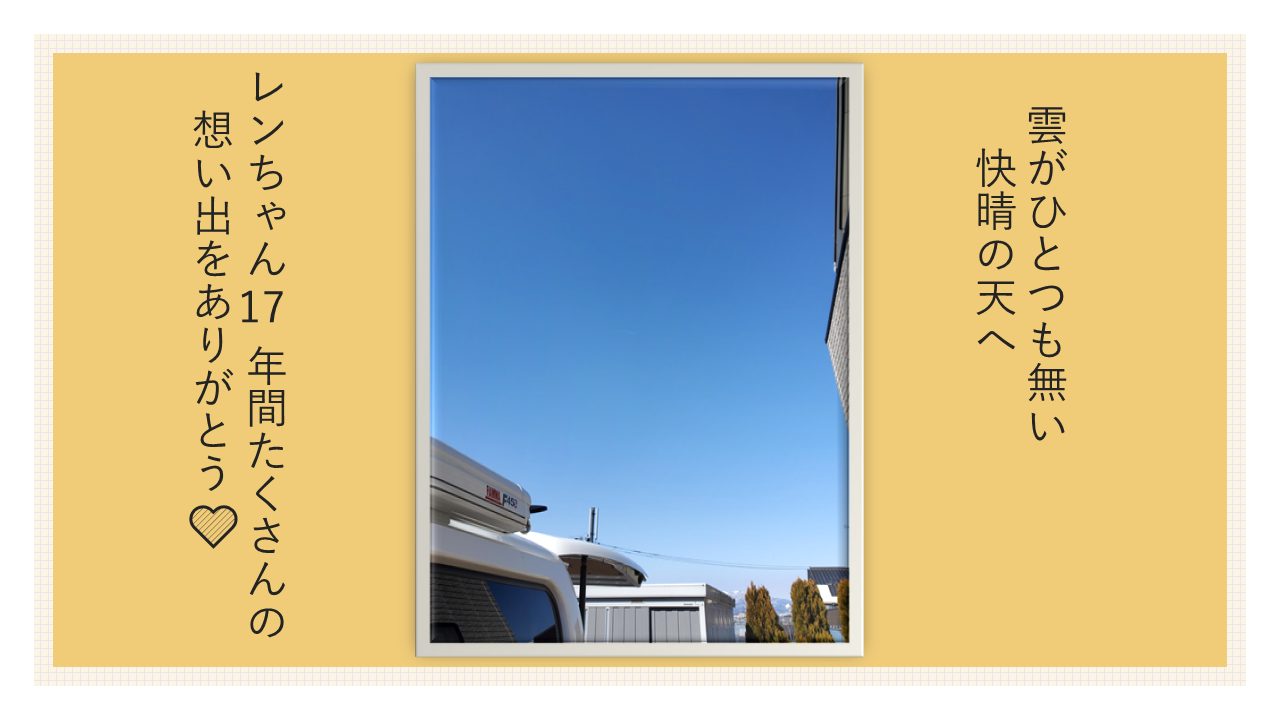 春のひざしに、風もなく快晴の天へ「レンちゃん」17歳天国へ🌈 送り届けるお手伝いをさせて頂きました。