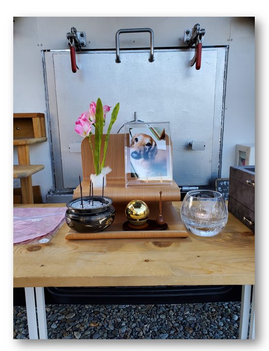 葬儀の始まりの頃にはとても風が強く心配されましたが、時間が経つにつれ風もおさまり 「クッキーちゃん」を天国へ無事案内することが出来ました。