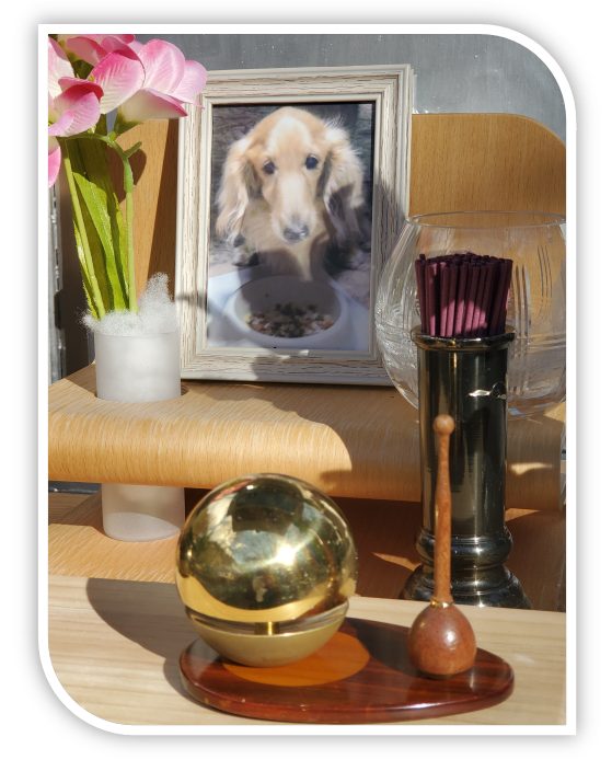 お骨つぼは、少し大きめの5寸ピンクをお選び頂きました。12時前には「グリちゃん」17歳の葬儀を滞りなく終える事ができました。ご冥福をこころよりお祈り申し上げます。