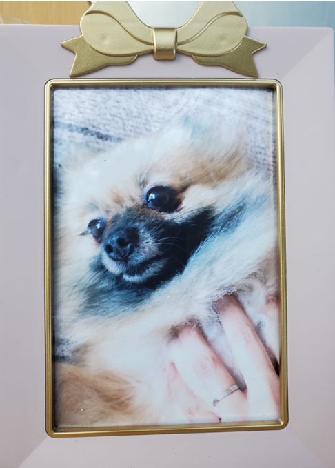 「モエちゃん」のご遺骨は、ご家族様5名でご収骨をして頂きました。最後はピンクの巾着袋をご主人の手のなかにシッカリと抱っこして頂きました。