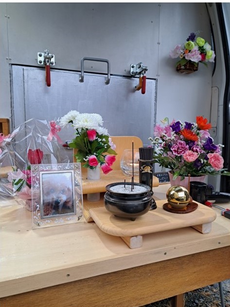 2024年1月21日10時よりご自宅からお見送りをして頂きました。時おり強い☔雨のなか、そして冷たい風が吹く中、ご家族様に立会って頂きました。