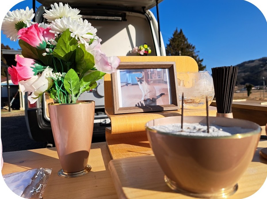 2025年2月15日14時から3名様にお焼香をして頂きました。先に亡くなられた「プリンス」「まる」「ごはん」ちゃん、特に「ごはん」ちゃんとは大の仲良しでした。