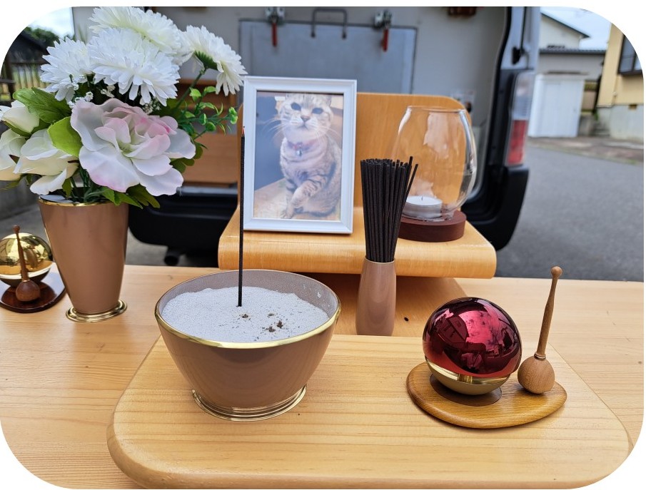 大好きだったチュールや、遊んでいたおもちゃも一緒に。