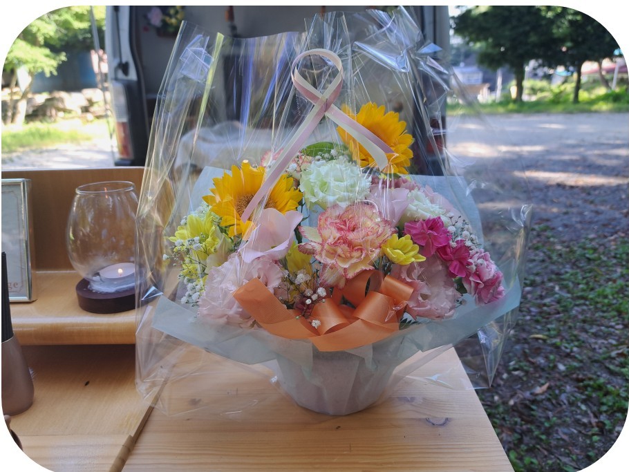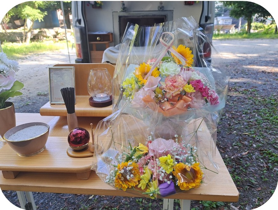 納棺生花+お花かご 3,000円お得なプランです。白河市 お花屋「ふう香」さんのお花です。